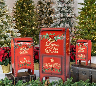 We have a range of Christmas characters and complementary pieces that are perfect for building complete themes. If you want the classic aesthetic, consider the fiberglass Santa on a sleigh, surrounded by lit gift boxes with ornament designs or fun boxes with bows. As a finishing touch, remember the artificial snow and a letter-to-Santa mailbox.