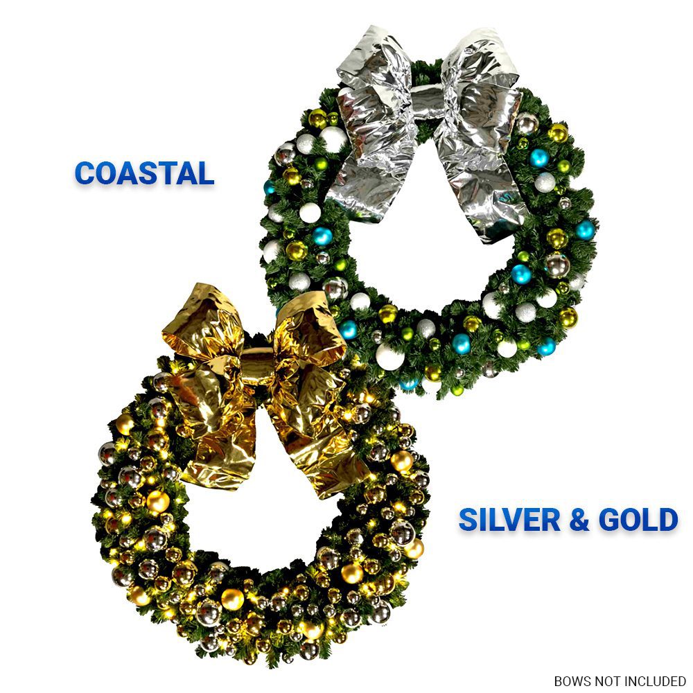Equal parts 4″ and 6″ Shatterproof Balls in combination of Red, Green, Gold or Silver.