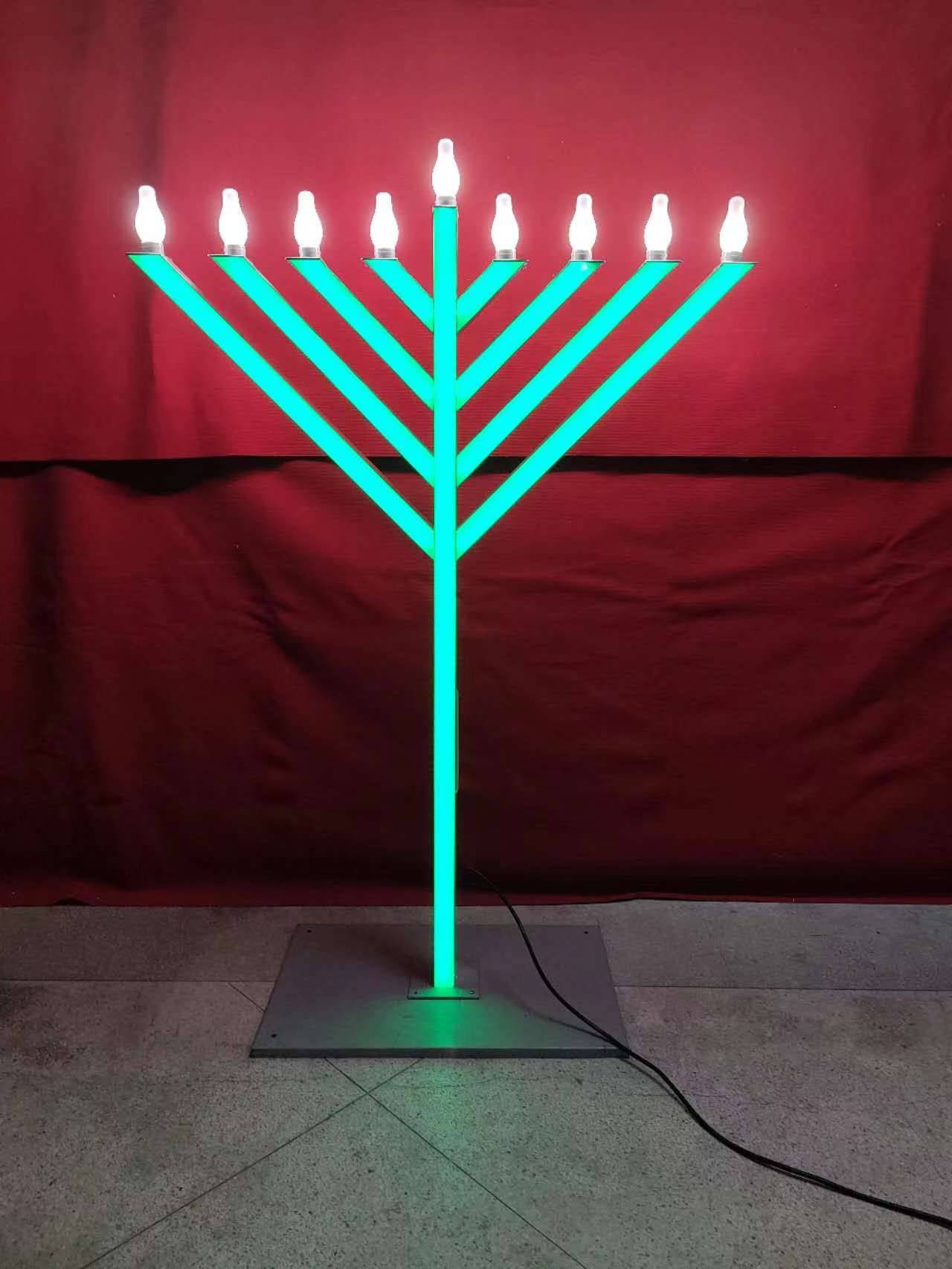 Full Menorah Illumination: The entire menorah lights up, creating a vibrant and captivating display.