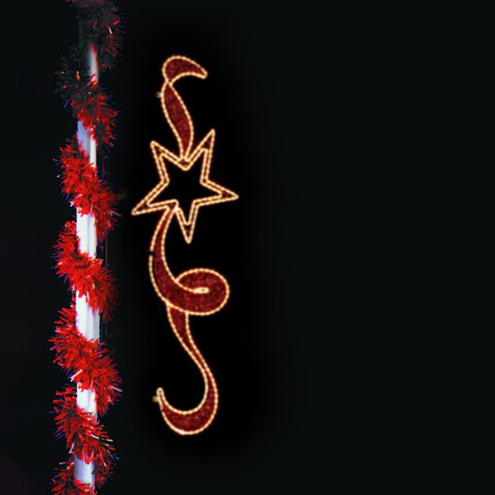 • Lit with warm white LED. • Pole mounted • 7.6 ft. x 2.3 ft. – Warm White LED