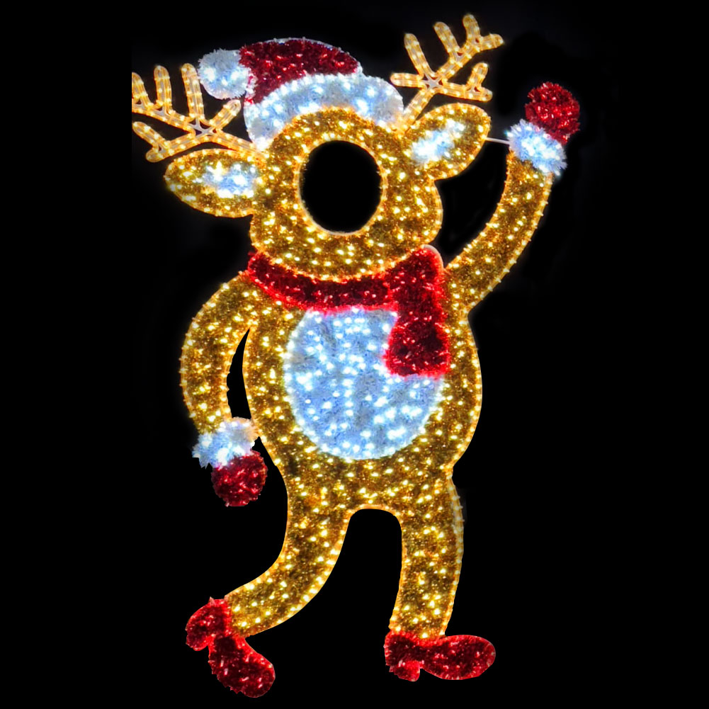 - Deer are lit with 5mm Wide Angle LED Mini Lights and LED Rope Light combined with Iridescent Garland.